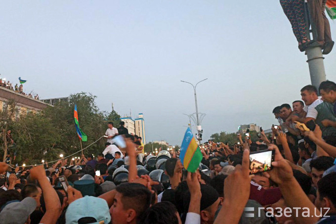 - Около полуночи у Жокаргы Кенеса послышались звуки, похожие на взрывы. Это были шумовые гранаты и шашки со слезоточивым газом. Люди начали разбегаться. Слышались выстрелы. Начались задержания. Появились видео с тяжело ранеными людьми. «Газета.uz» пересказывала рассказы очевидцев в своём репортаже из Нукуса.