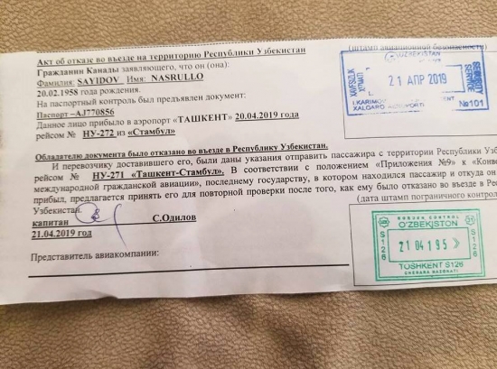 Сайидов прибыл в Узбекистан с канадским паспортом (эта страна предоставила ему политубежище). Граждане Канады могут находиться в Узбекистане без визы в течение 30 дней.