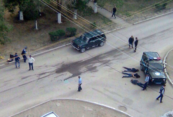 По словам работников скорой помощи, перестрелка сейчас идет на территории воинской части, кареты подъезжают к КПП и военные в бронежилетах выносят им раненых.