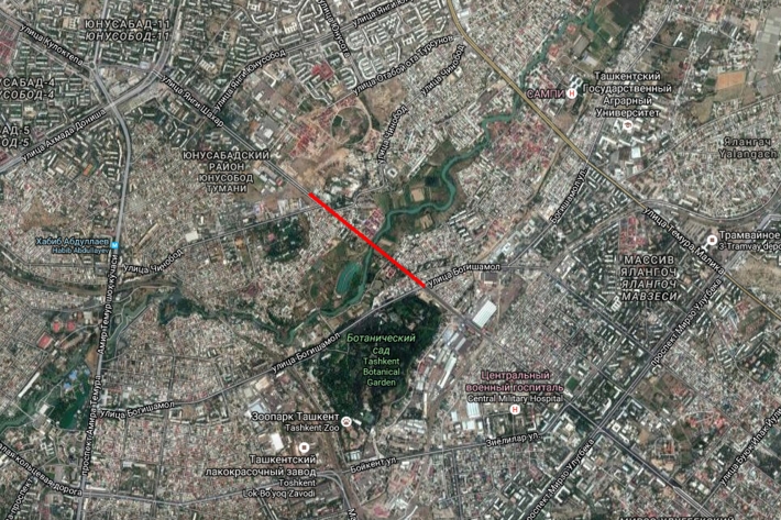 А теперь вот, судя по всему, она будет продолжена прямо – «пробита» через квартал частных домов. Новый участок дороги длиной всего лишь около километра выйдет к проложенной в прошлом году автотрассе между Ботаническим садом и Ташкентским кабельным заводом. Правда, надо будет еще возвести мост через канал Боз-су.