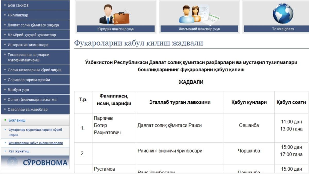 На проблемные стороны деятельности высокопоставленного чиновника фискальных служб указывает и фото-скан в публикации «Озодлика», подпись под которым гласит, что в перечне руководящего состава комитета, кому надлежит вести прием граждан, под №2 отсутствует ФИО первого заместителя председателя - «политбеженца» Мусаева.