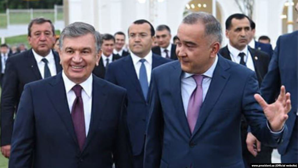 Мэр города Ташкента Джахонгир Артыкходжаев (справа) с президентом Узбекистана Шавкатом Мирзияевым