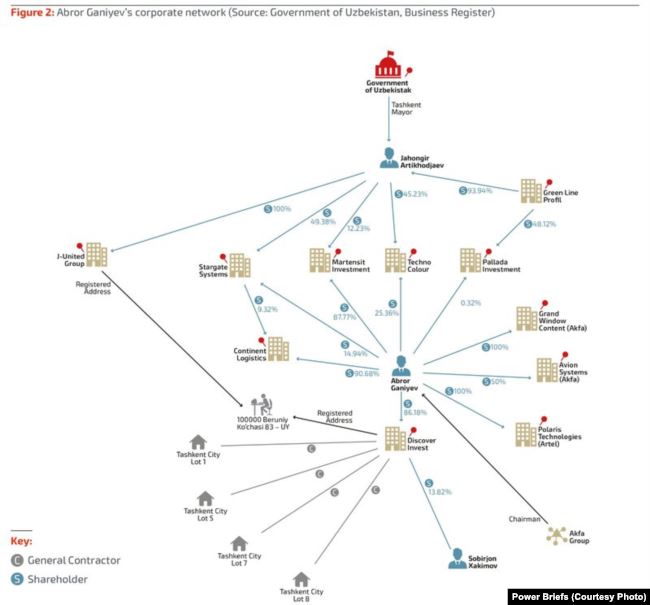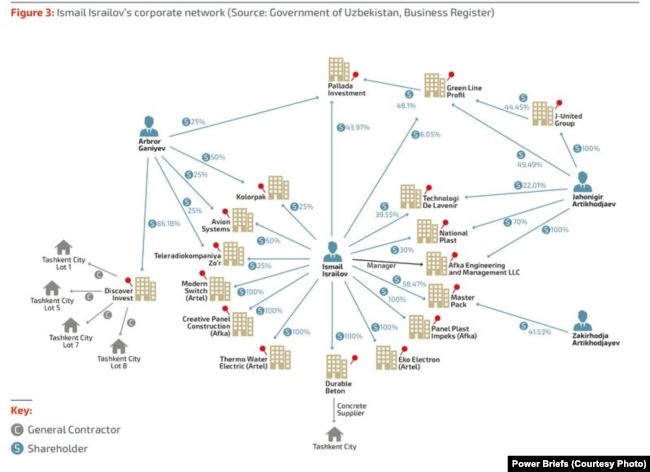 Озoдлик: В своем расследовании вы приводите имена владельцев акций десятков компаний, с которыми связан Джахонгир Артыкходжаев, получивший значительную долю не только в проекте Tashkent City, но и в других крупных проектах, осуществляемых в узбекской столице. Среди этих акционеров, кроме Джахонгира Артыкходжаева, вы часто упоминаете имена еще двух лиц – Аброра Ганиева и Исмаила Исраилова. Кто эти люди, какое они имеют отношение к Артыкходжаеву?