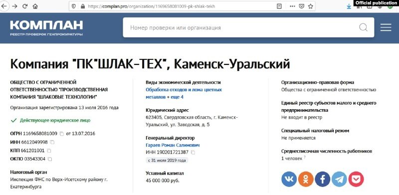 Согласно информации в открытых источниках, в налоговой системе Российской Федерации Роман Салимович Гараев значится в статусе частного предпринимателя и с 2019 года по сей день остается генеральным директором зарегистрированного в городе Каменск-Уральский Свердловской области ООО «ПК«Шлак-Тех».