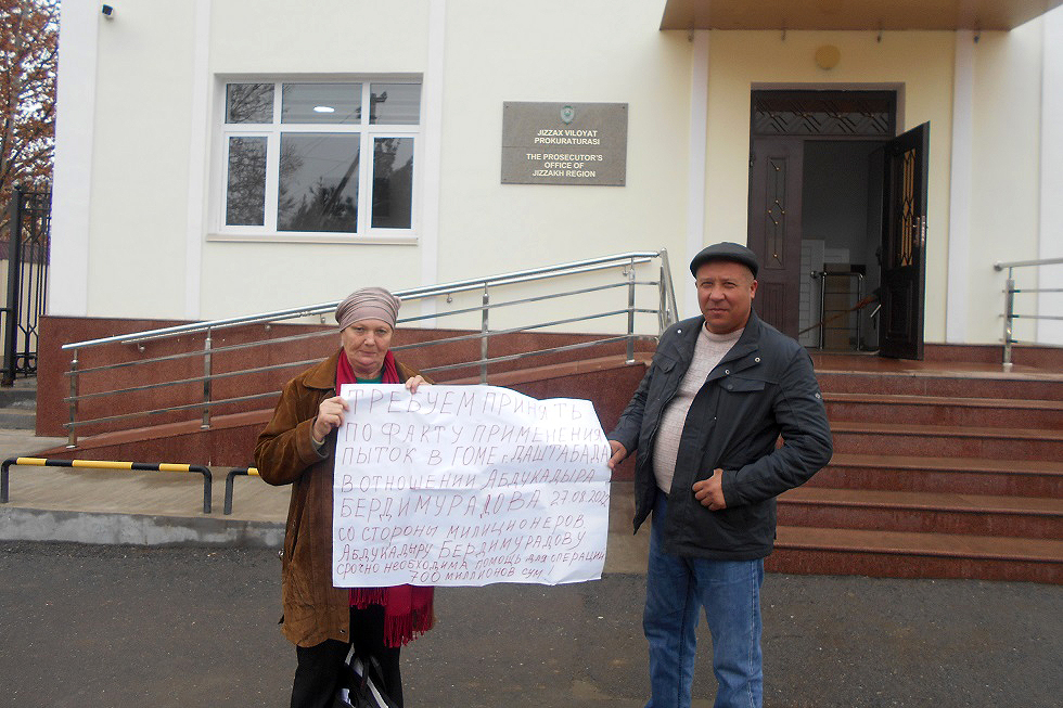 29 декабря правозащитники Елена Урлаева, Уктам Пардаев и родной дядя Абдукадыра Бердимурадова провели пикеты у отделений милиции и прокуратуры в Зааминском районе и Джизакской области с требованиями принять меры к причастным к пыткам сотрудникам милиции. Во время переговоров звучали обещания обеспечить законность, было сказано, что следствие идёт в ОВД Зааминского района, но ведущие его милиционеры не могут установить виновных лиц.