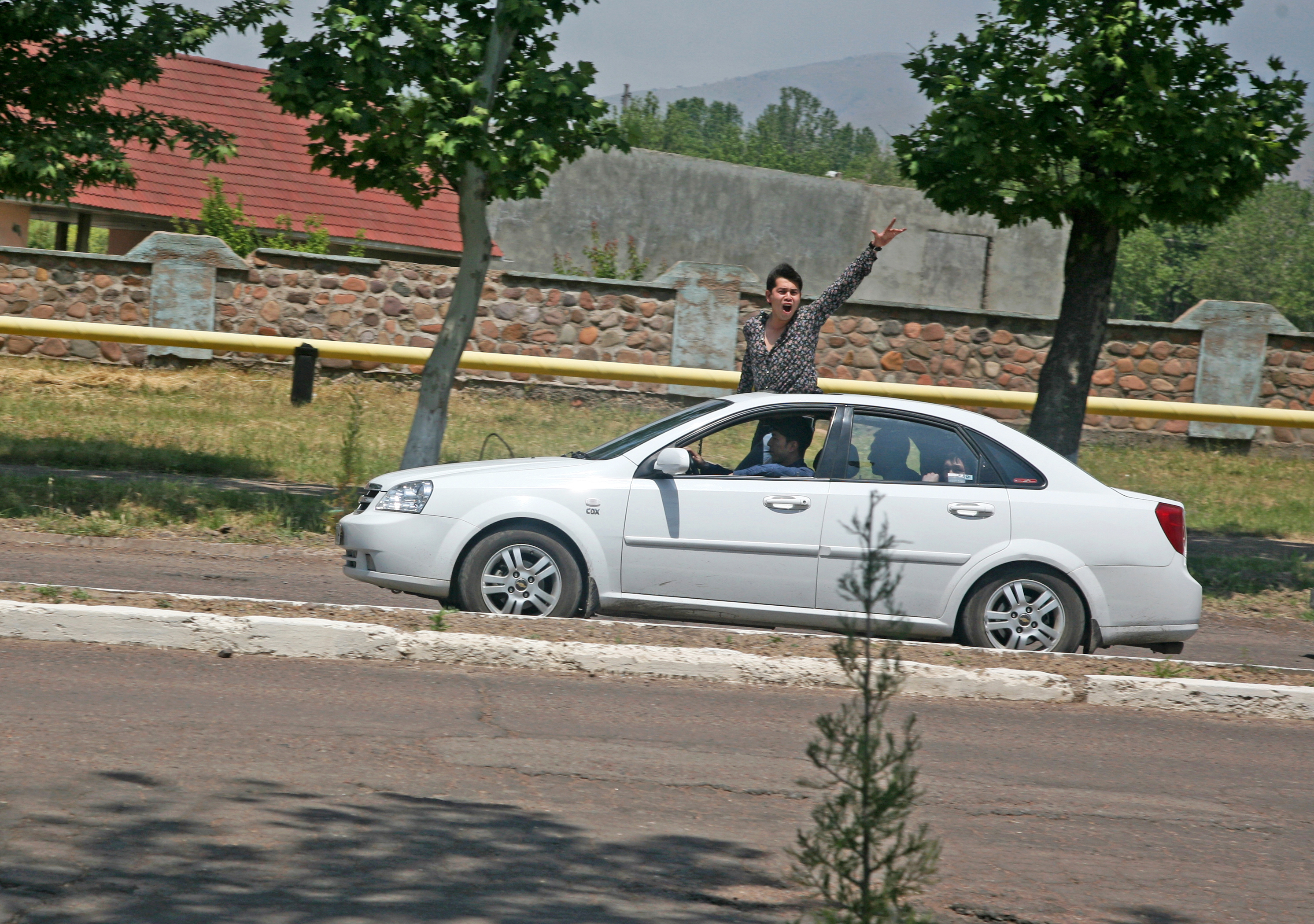 Движение автомобилей успешно пытался регулировать местный псих, похожий на толстого коррумпированного казахского гаишника. Как мне поведали, в Ангрене уже двое таких «регулировщиков», так что впору говорить о новой форме сумасшествия.