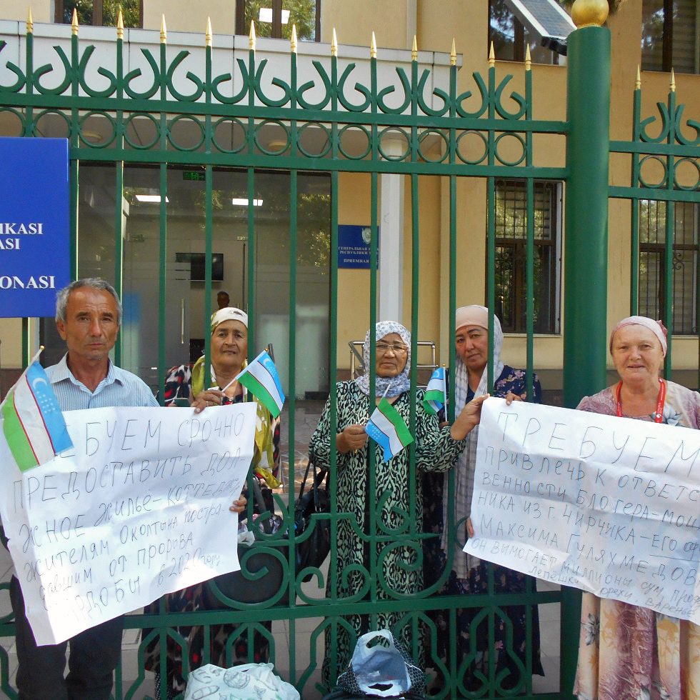 По словам участников пикета, комиссия из 23-х чиновников, созданная по указу президента Узбекистана за №Ф 5569 «Сардоба сув омбори» («Сардобинское водохранилище» – ред.) под председательством премьер-министра А. Арипова, в состав которой входит Генеральный прокурор Узбекистана Н. Юлдашев, умышленно создала путаницу с документами – от пострадавших жителей принимали их законные кадастровые документы на дома, которые смыла вода, а выдавали для получения квартир в новых домах фальшивые документы с не соответствующими адресами; потерпевших в списки на получения жилья не зачислили.