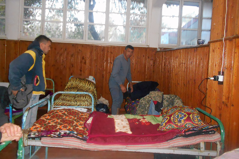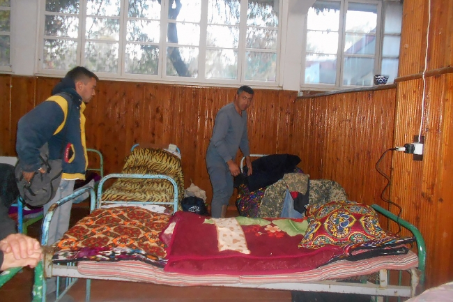 «Добровольные» сборщики хлопка спят на детских кроватях в хлопковом штабе Алмалыка