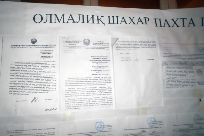Этот хлопковый штаб (по-узбекски пахта штаби) работает с августа 2019 года, им руководит хоким (глава администрации) Алмалыка Усман Рахимов, который обязал сотрудников АГМК, а также сотрудников узбекско-испанского химического завода «Аммофос Махсам», кадастровой и налоговой служб, банков и махаллинских (квартальных комитетов) города Алмалыка собирать хлопок под видом добровольцев или платить из собственного кармана нанимаемым сборщикам хлопка, приехавшим из Ферганской области. Сам Усман Рахимов тоже ночует в этом штабе, ему готовят еду отдельно, продукты питания привозят на машине «скорой помощи», в том числе алкоголь, сообщают правозащитницы.