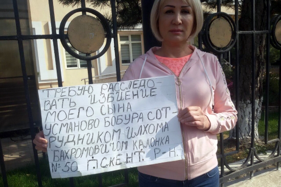 Правозащитницам стало известно, что на поле сотрудник колонии Ильхом Бахромович избил заключённого Бобура Усманова (житель Чиланзарского района Ташкента), который находился в больнице ТашМИ с 12 октября по 19 октября с диагнозом «сотрясение мозга и повреждения ушных перепонок». Его мать Доно Якубова вместе с правозащитницей Солмаз Ахмедовой провели пикет у ГУИНА с требованиями расследования избиения Бобура Усманова.