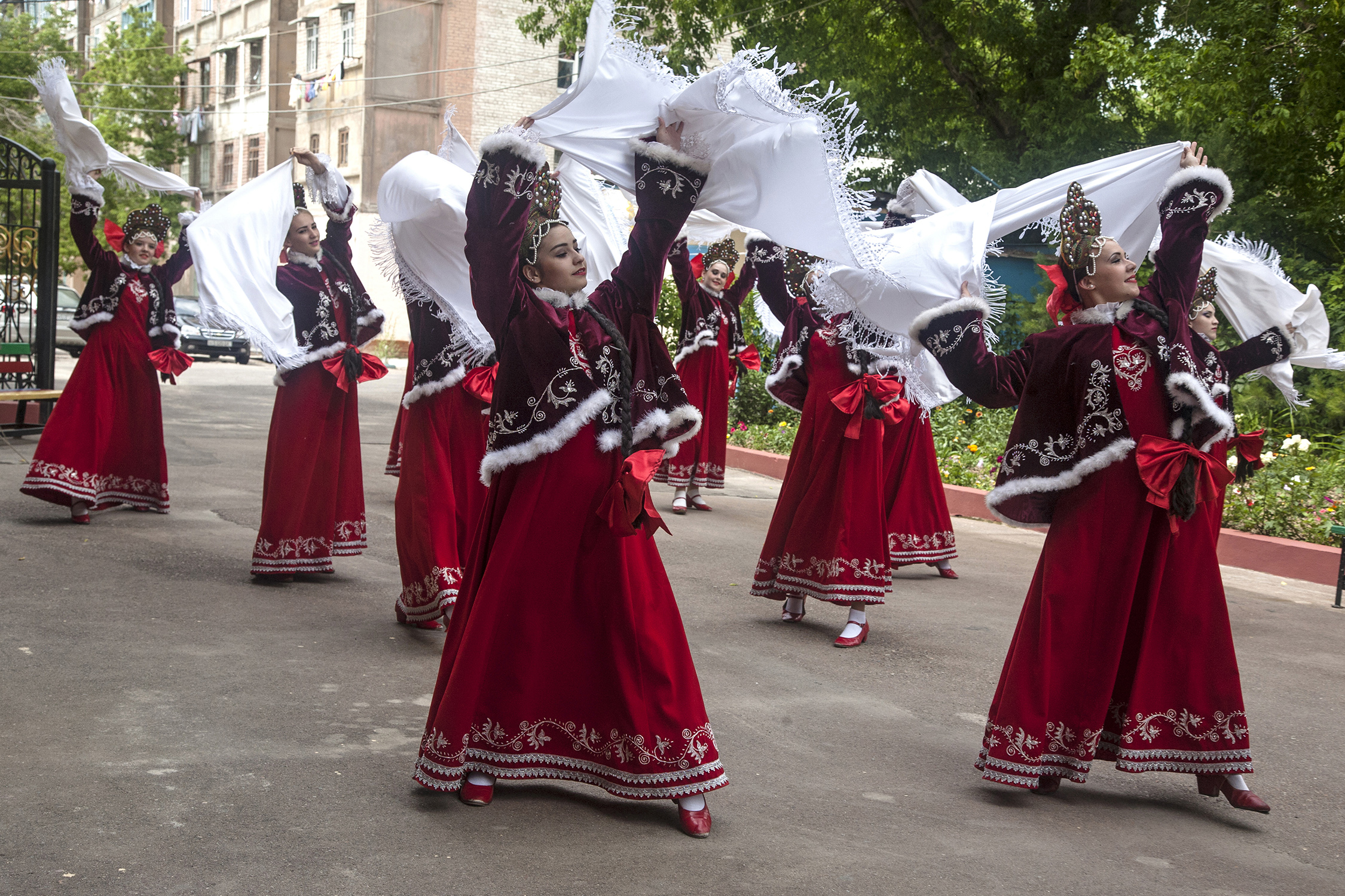 Во дворе алмалыкского корейского культурного центра расставили столы, звучали поздравления, речи, песни времен войны. Как это ни странно, обошлось без привычного для Узбекистана ритуального лизоблюдства – ни один из выступающих не упомянул про «бизнинг буюк келажагимиз» и «буюк президентимиз». Память о войне для собравшихся, судя по всему, была глубоко личной – их отцы, матери, дедушки и бабушки с 1941 по 1945 год работали на «трудовом фронте» - в корейских колхозах Узбекистана.
