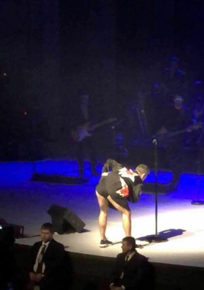 Настоящий скандал с гневными комментариями под многочисленными фотографиями Уильямса разразился уже после концерта в соцсетях. А всё дело в том, что эпатажный певец, как и следовало ожидать, задел ментальные чувства многих узбекистанцев (большинство из них не присутствовало на концерте) своим беспардонным поведением на сцене. Будто было мало всех прочих «тлетворных» выходок, так еще под всеобщий хохот и истерично-восторженные визги «золотой молодежи» вошедший в раж британец продемонстрировал собравшимся в зале свой зад. Хорошо, хоть не оголенный. (Можете представить при этом реакцию узбекских телевизионщиков?..).