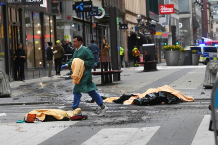 Теракт, унесший жизни четырёх человек, произошёл в пятницу, 7 апреля, у торгового центра Ahlens Mall,на улице Дротнинггатан. Машина остановилась лишь после того, как въехала в витрину одного из магазинов. На фотографиях с места события, размещённых в социальных сетях, видно, что кабина грузовика после столкновения загорелась.