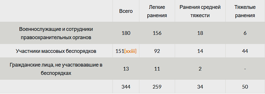 [xxiii] В документах упоминается о 151 раненом участнике беспорядков, но в доступном поименном списке присутствуют данные лишь о 150.