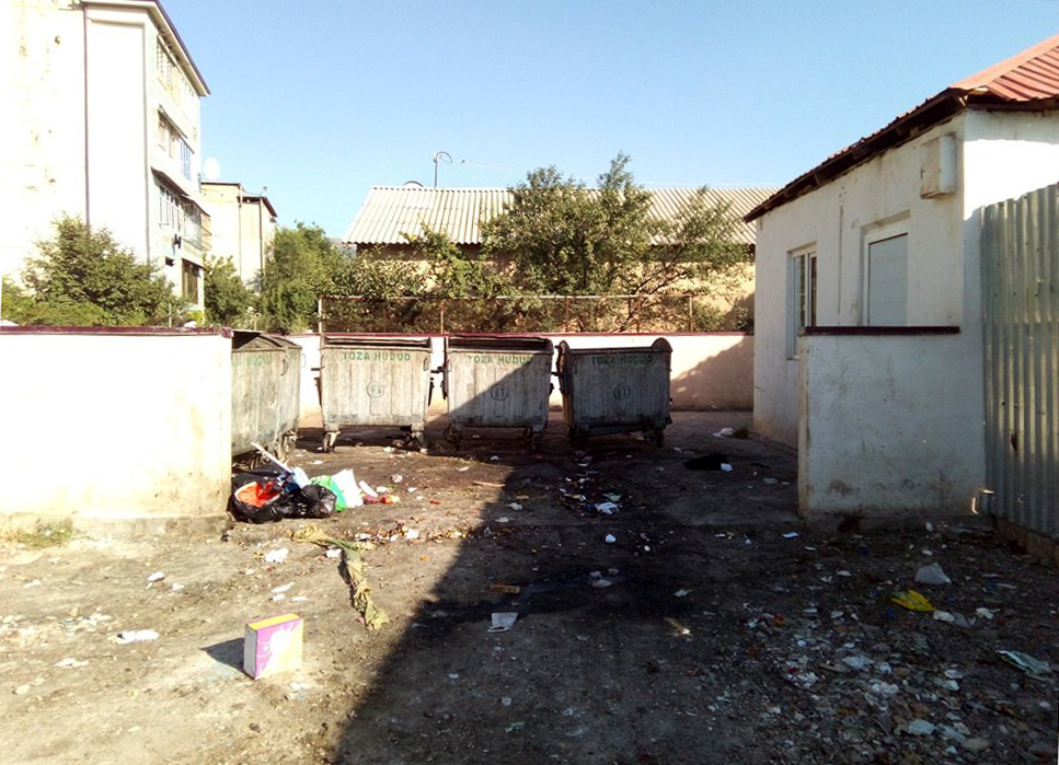 Так выглядит наша мусорка сразу после вывоза мусора - без воды, без освещения, контейнеры старые и ржавые