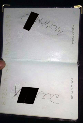 Получив же категорический отказ, один из них демонстративно нацарапал шариковой ручкой в паспорте узбекского мигранта нецензурные слова.