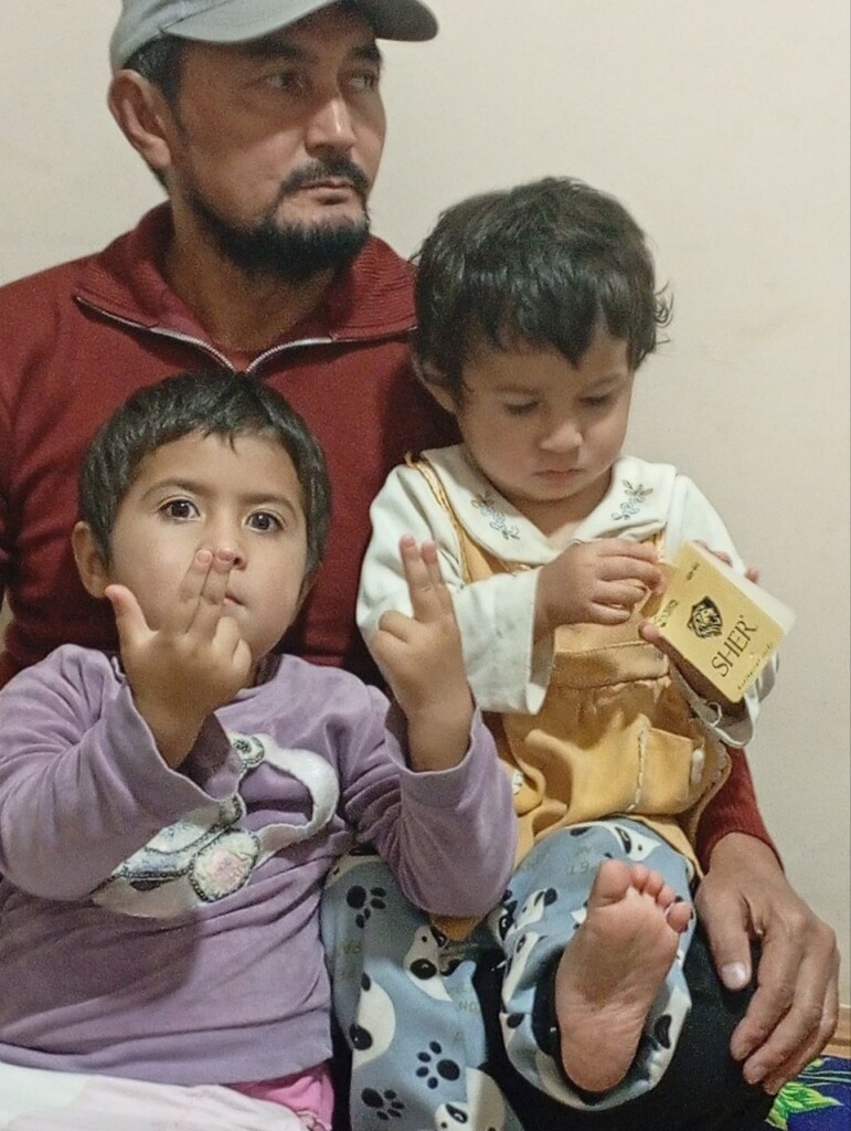 Салим Килибаев с двумя дочками — бездомная семья с мая 2020 года