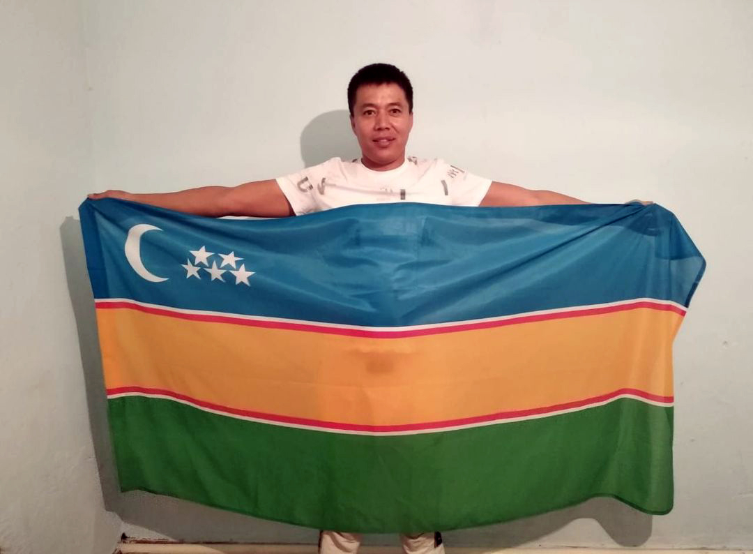 Жеткербай Абдраманов с флагом Каракалпакстана, 2022 г.