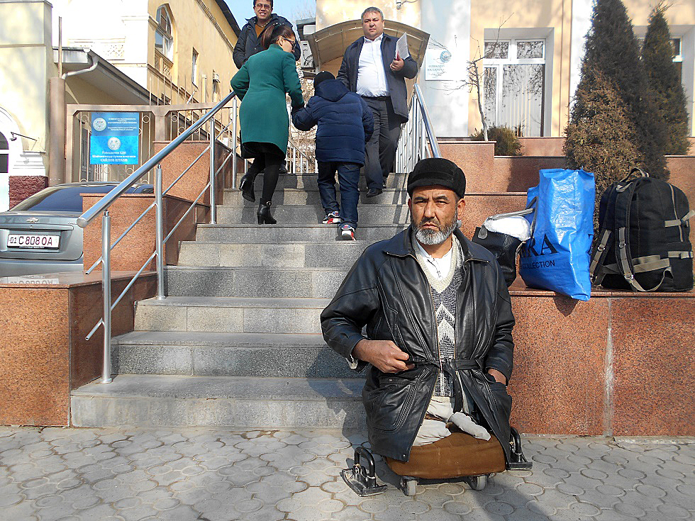 Как утверждает руководитель «Правозащитного альянса Узбекистана» (ПАУ) Елена Урлаева, поезд отрезал ноги Ядгорову, когда ему было18 лет, и он работал на железной дороге стрелочником. С тех пор он получил юридическое образование и выяснил, что личный автотранспорт ему положен его по закону, а вот руководство железной дороги об этом почему-то подзабыло.