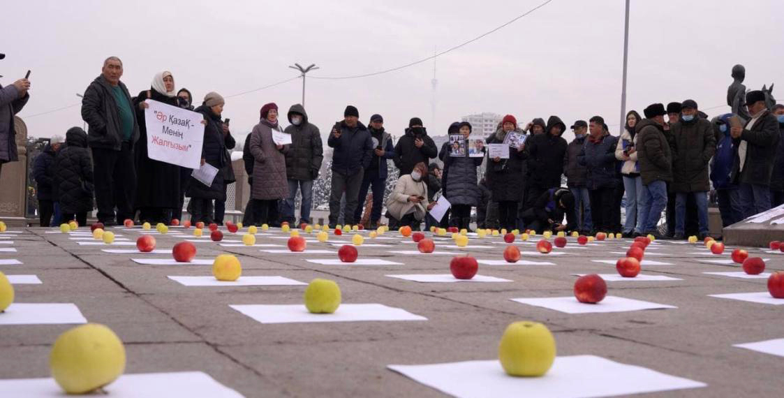 Жители Алматы на акции памяти 13 февраля 2022 года