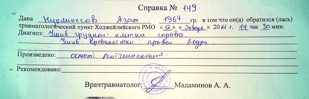 Ушиб лица. Справка, выданная Н. Турымбетовой