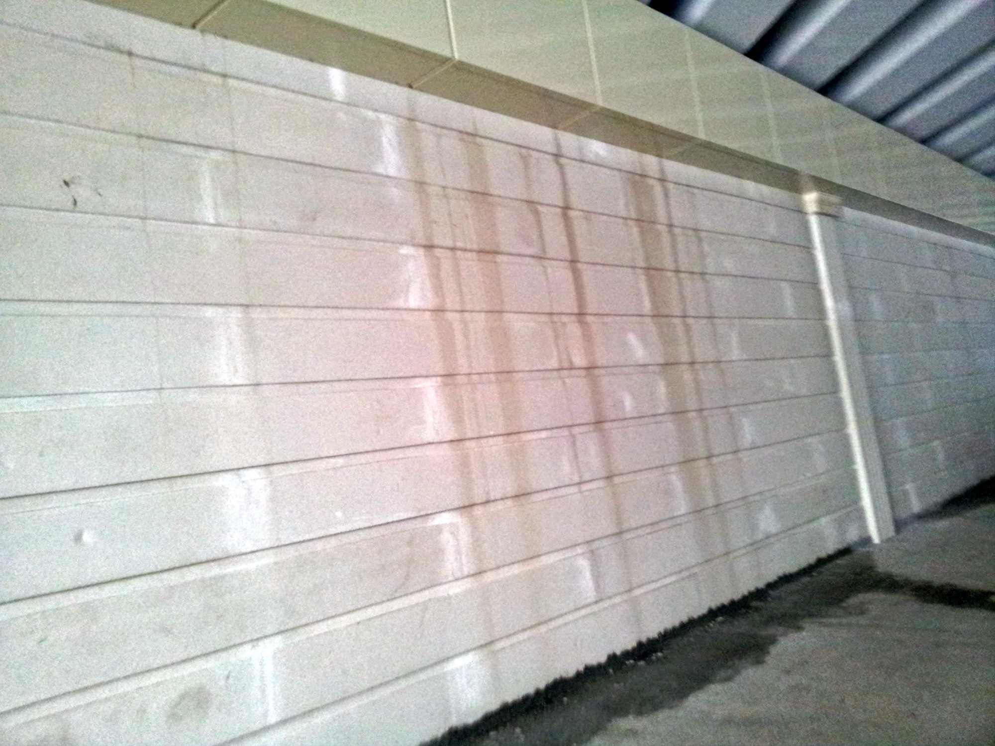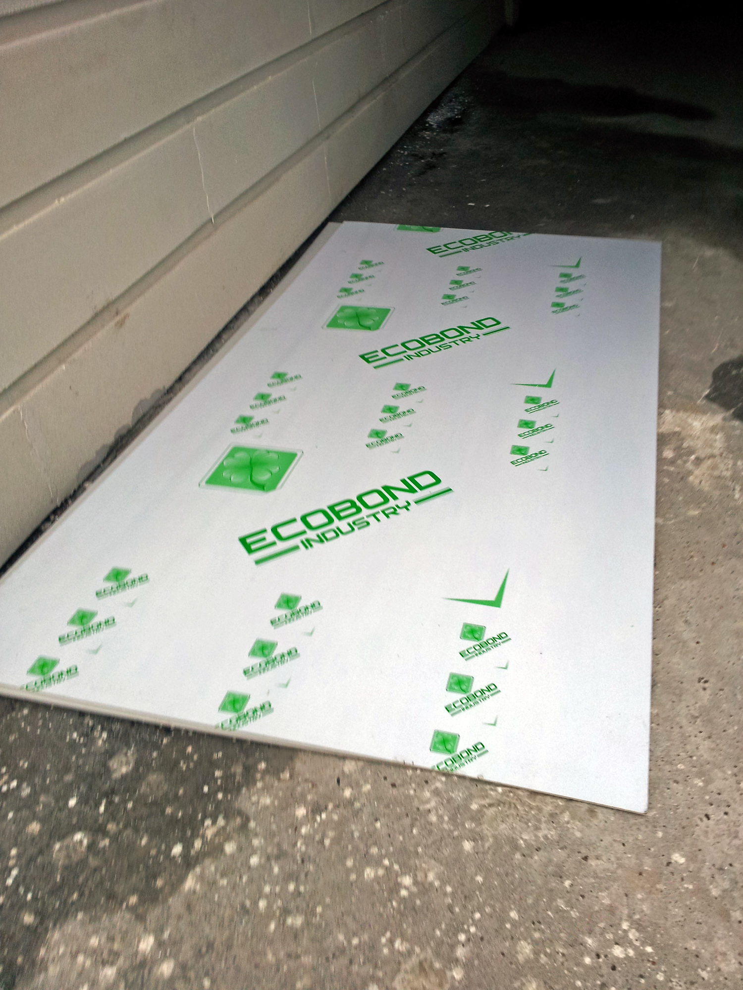 Дождевая вода стекает по свежеприклееному пенопласту и алюкобонду