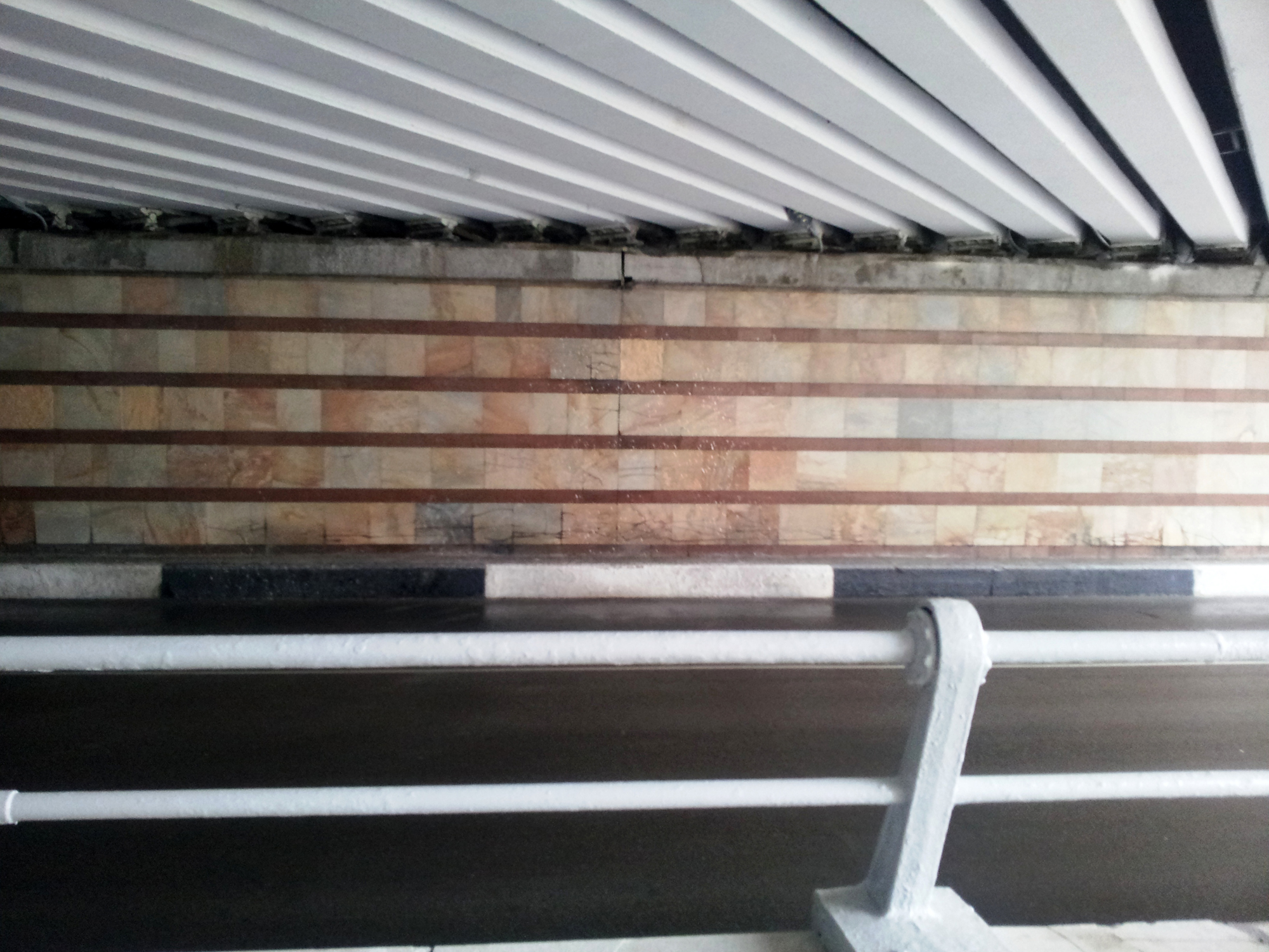 Здесь неким подобием пенопласта заменяют розовый мрамор, которым была отделана внутренняя часть моста еще с советских времен.