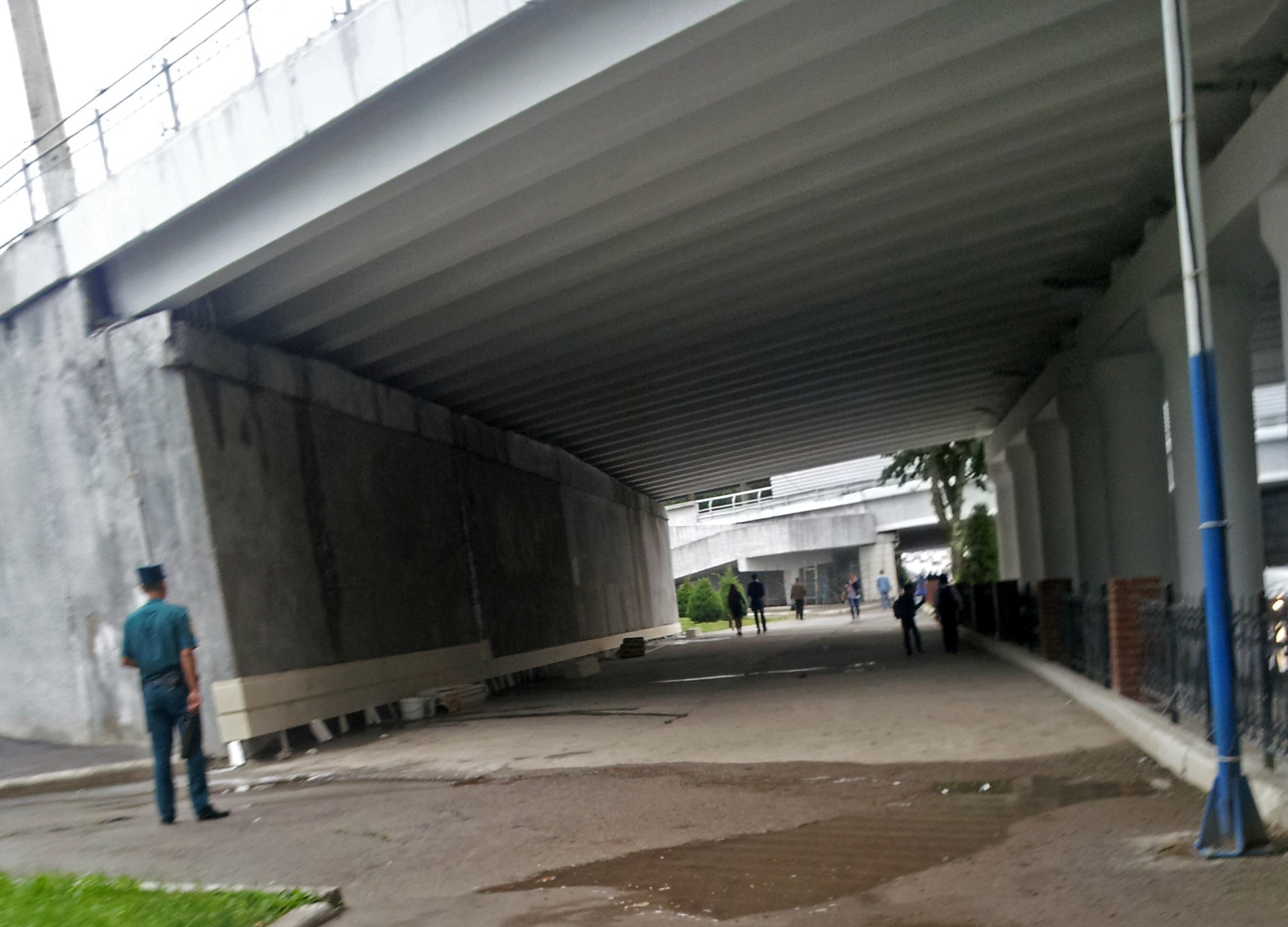 Простым гражданам даже некому задать беспокоящие их вопросы, так как производитель работ под мостом нигде не указан, на рабочих нет никаких знаков отличия, да и набрали их, скорее всего, на какой-нибудь бирже подёнщиков-мардикёров.