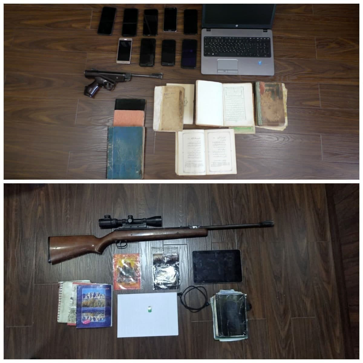 На опубликованных фотографиях видны несколько мобильных телефонов, ноутбук, карта памяти, пистолет, похожий на пневматический, и винтовка с оптическим прицелом.