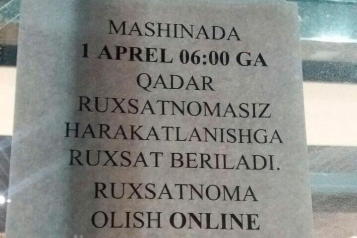 Объявление гласит, что без стикера в Ташкенте можно передвигаться на личном авто. Фото Kun.uz