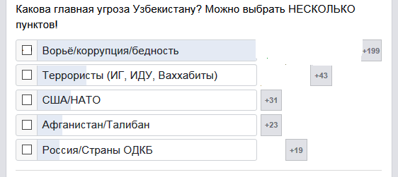Тема коррупции настолько поглотила участников опроса, что никто не прокомментировал второй немаловажный пункт - про исламистов. Казнокрады и коррупционеры тем и страшны, что продадут страну любому внешнему агрессору, считают пользователи.
