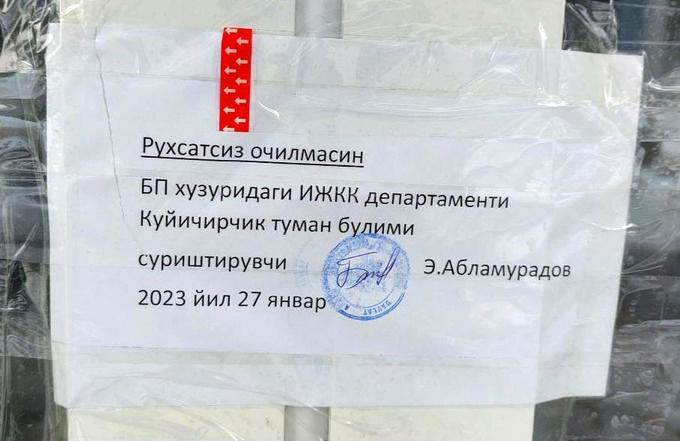 Издание также сообщило, что офис был опечатан следователем Куйичирчикского (Нижнечирчикского) районного отдела Департамента по борьбе с экономическими преступлениями при Генеральной прокуратуре Узбекистана Э. Абламурадовым.