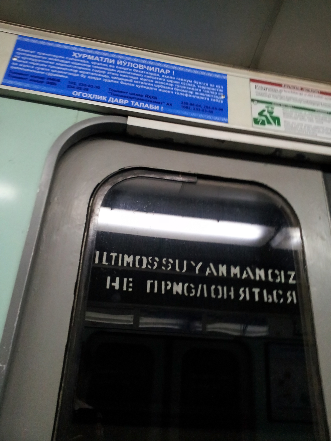 Данные объявления вывешены пока только на узбекском языке, и в основном на Узбекистанской линии метрополитена - в поездах метро и у кассы. На Чиланзарской линии эти объявления пока встречаются в виде распечатанных на принтере листов бумаги.