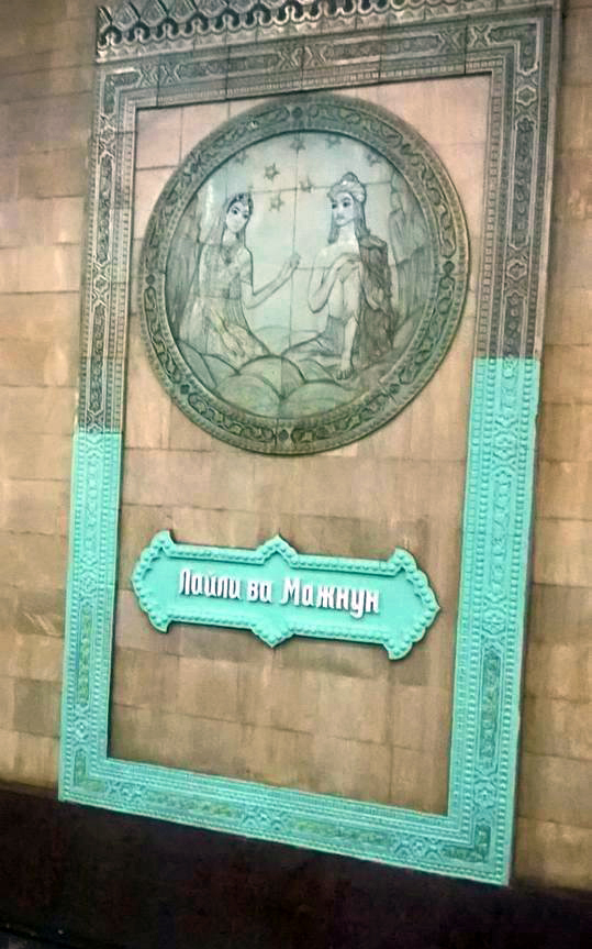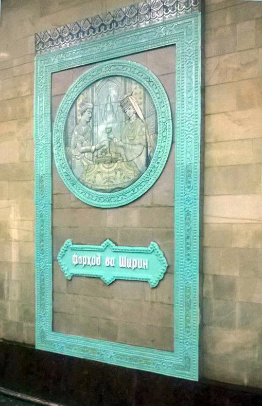 На панно изображаются сюжеты из произведений восточных поэтов, в частности, «Хамсы» («Пятерицы») самого Навои – «Фархад и Ширин», «Лейла и Меджнун» и другие.
