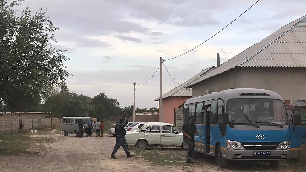 На въезде в село Шорнак после конфликта выставили полицейский блокпост, улицы населенного пункта патрулирует спецназ. Силовики пропускают людей и транспорт в село после проверки. В село прибыли несколько полицейских автобусов, военный автомобиль, пожарная машина, сообщает корреспондент Азаттыка. Она видела разбитые в двух домах окна, четыре поврежденных автомобиля. Жители утверждают, что это имущество узбеков.