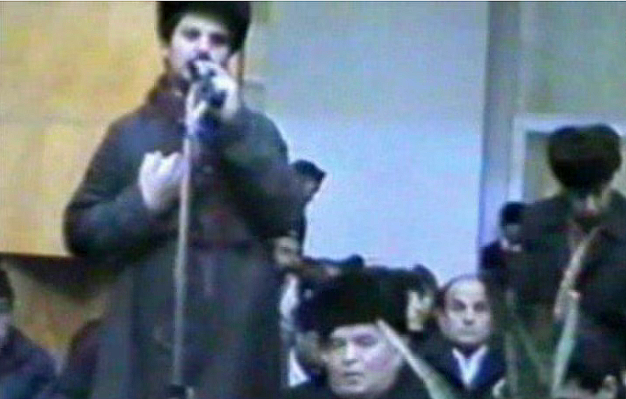 Тахир Юлдаш, покойный лидер террористического «Исламского движения Узбекистана», захвативший административное здание в Намангане, и присевший рядом с ним ныне покойный президент Ислам Каримов. Декабрь 1991 года. Скриншот из видео