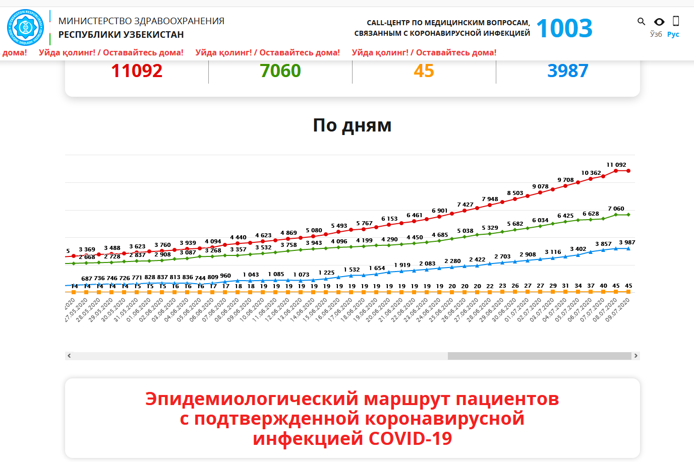 Последний подобный случай зафиксирован 8 июля: в Кашкадарьинской области в этот день было выявлено сразу 127 человек, инфицированных при строительстве завода по производству жидкого синтетического топлива Uzbekistan GTL (по другим источникам, общее количество зараженных достигло 168).