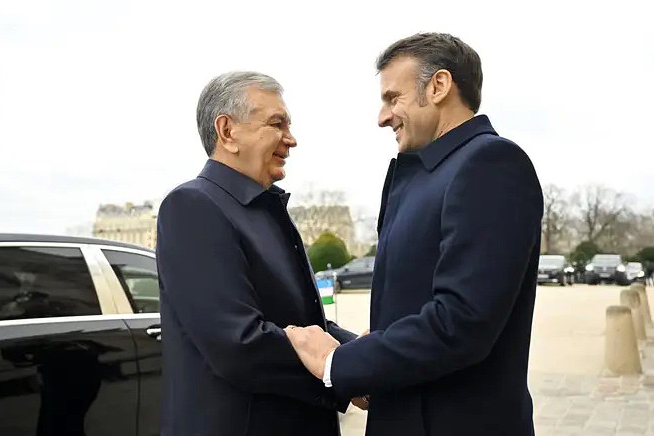 12 марта в Доме ветеранов в Париже состоялась официальная церемония его встречи, сообщила пресс-служба главы государства. В тот же день Шавкат Мирзиёев и Эммануэль Макрон подписали Совместную декларацию об установлении отношений стратегического партнёрства между двумя странами. МИД Узбекистана и Елисейский дворец опубликовали текст документа на узбекском и французском языках.