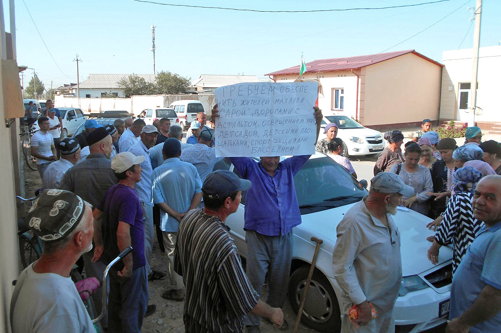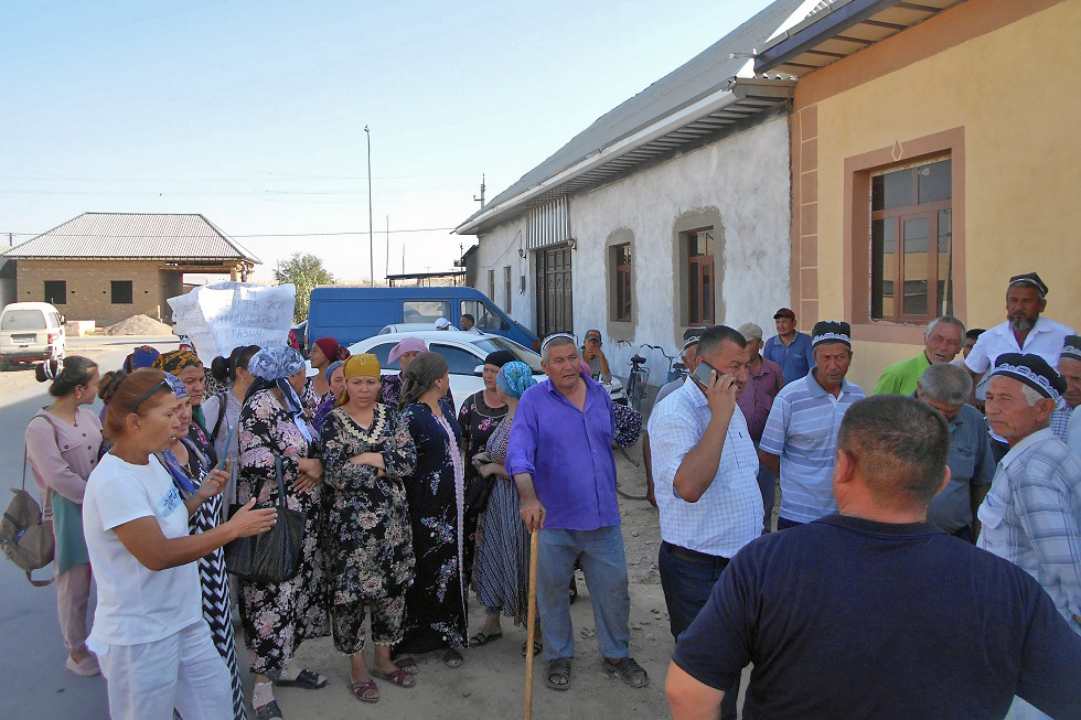 Когда в конце июля Урлаева приехала в «Сарой», народ собрался на улице возле здания махаллинского комитета. Люди жаловались, что при 47-градусной жаре у них нет водопроводной воды. Местная власть истратила 17 миллиардов сумов (около полутора миллионов долларов) на прокладку водопроводных труб, однако вода так и не появилась. Жители поселка вынуждены покупать привозную воду, хранить её в самодельных водохранилищах – хаузах, где она портится, отчего многие болеют.