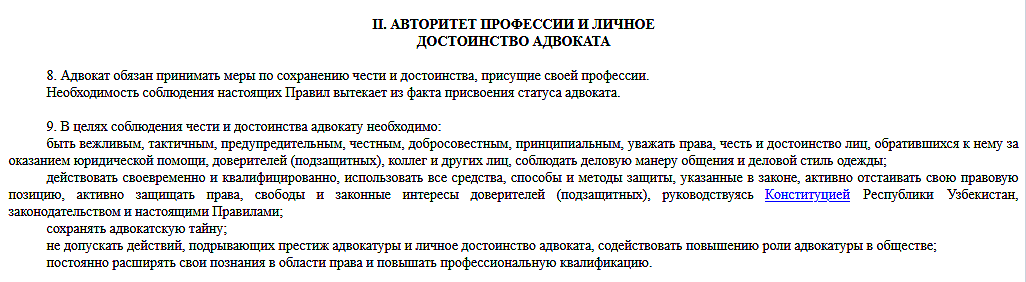 Пункт 9 раздела II «Правил профессиональной этики адвоката»