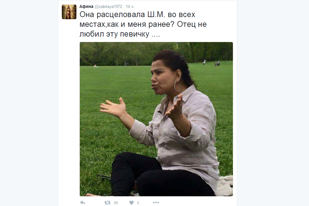 Что касается прочих опубликованных Гульнарой текстов за короткое время существования его нового аккаунта, то они в целом делятся на две категории. Первая – выражение тоски по покинувшему ее отцу (и, соответственно, счастливой жизни при нём).