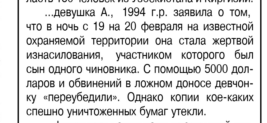 Но обо всем по порядку. В конце февраля в Павлодаре распространились слухи об изнасиловании, произошедшем в охраняемой резиденции главы региона в поселке Кенжеколь. По тем же слухам, в нем принимал участие сын акима-губернатора, а жертву заставили замолчать – то ли с помощью денег, то ли угрожая уголовным делом.