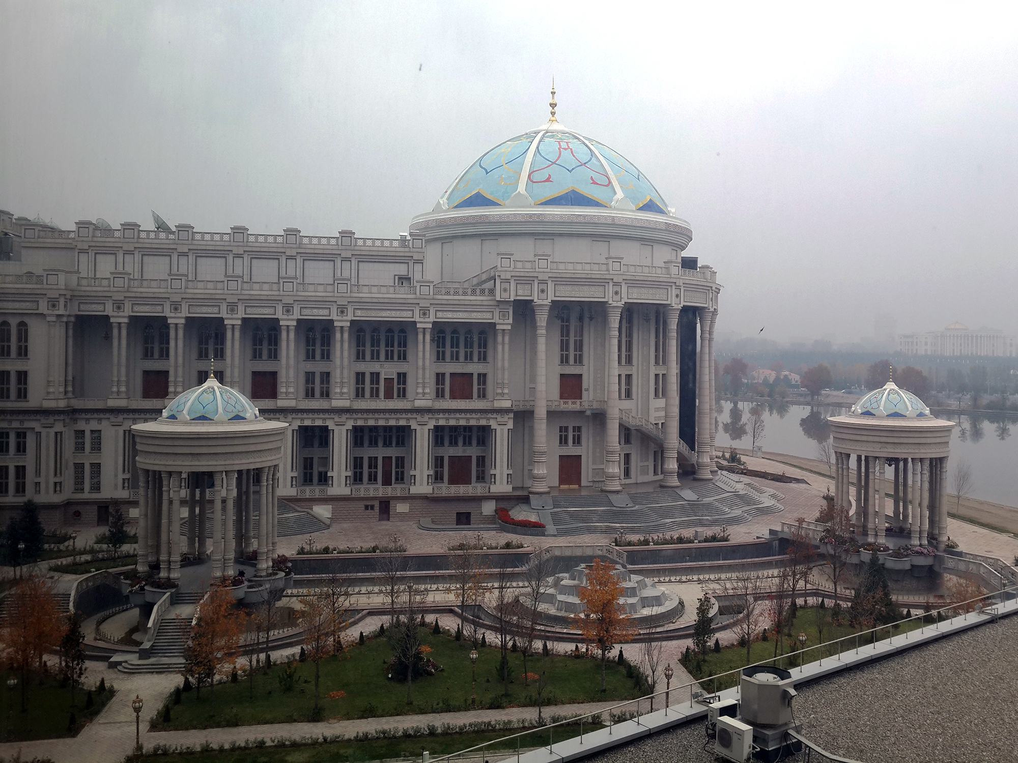 Немало административных зданий в центре города построены еще в советское время, точнее, большинство. Периодически на них мелькают советские же мозаичные сюжеты (например, на фасаде кукольного театра). Между ними вырастают-прорастают высоченные кирпичные «элитки» примерно в 12-14 этажей. Вероятно, не потому что жителям Душанбе они особенно нужны, а потому что так захотел президент. О том же свидетельствуют и помпезные дворцы с обязательными колоннами.