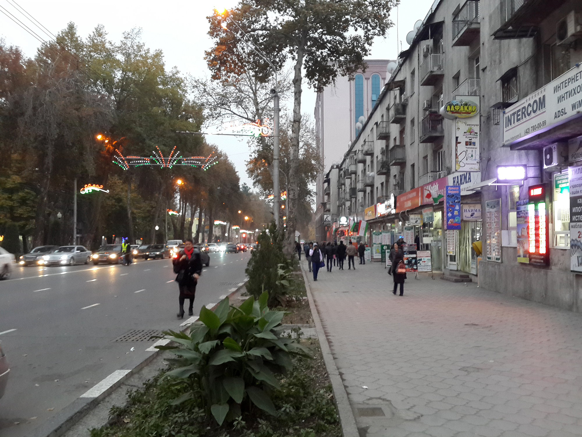 Пользуясь случаям, я прогулялся по его центральной части – проспектам Сомони (ранее Путовского) и Рудаки (ранее Ленина). Как оказалось, город окружен горами. На улицах встречаются живописные бородачи, каковых редко увидишь в Ташкенте. Время от времени по обочинам тротуаров занимают позиции женщины, выпрашивающие подаяние. В целом народ одет попроще, победнее: ни нефти, ни газа ведь нет. Зато многие, особенно молодежь, улыбаются, смеются, на вид не такие зажатые, как в Узбекистане.