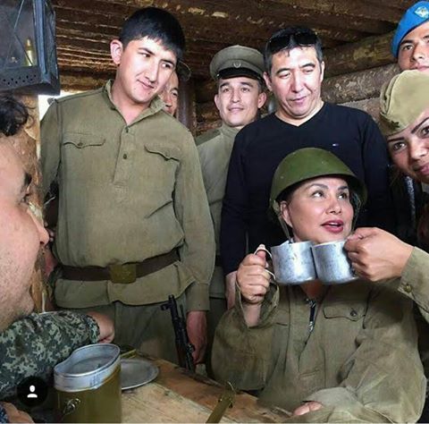 Еще одно новшество – на узбекское телевидение вернулись песни и фильмы 1940-х годов, опять-таки запрещенные Исламом Каримовым. Например, «Темная ночь». Изменившееся отношение чутким нюхом флюгера уловила и эстрадная дива Юлдуз Усманова, немедленно снявшаяся на фото то ли в «землянке», то ли в «блиндаже», в советской гимнастерке и в окружении таких же «солдат».