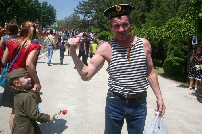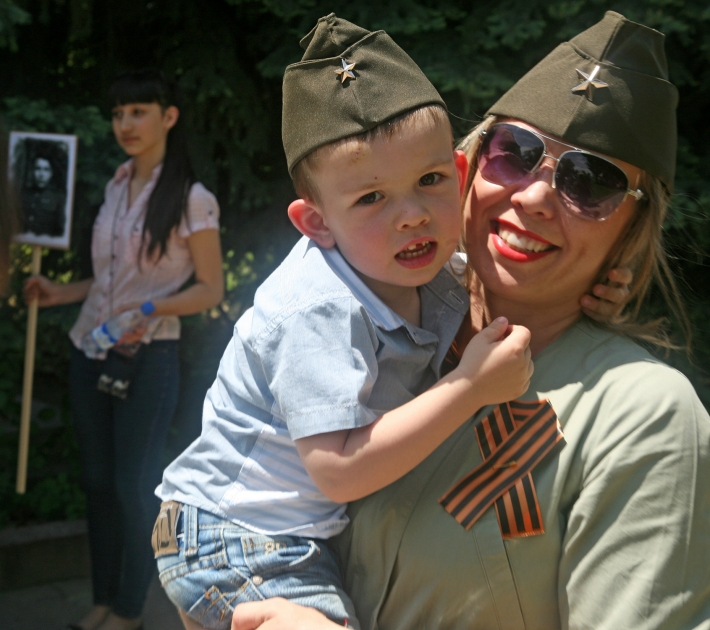 В парке мне бросилась в глаза какая-то карнавализация праздника – многие посчитали нужным нарядиться в военную форму или хотя бы водрузить на голову пилотку. Воспринимающих памятную дату не в качестве повода вспомнить о погибших и выразить свою скорбь, а как возможность покрасоваться на публике, стало значительно больше. Конечно, это тоже способ выражения солидарности, но, на мой взгляд, слишком уж легкомысленный.