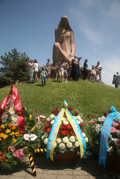 Сейчас в мемориальном парке собрались тысячи людей. Многие держали перед собой портреты родных и близких.