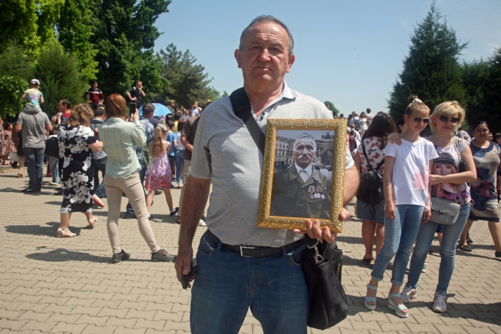 «Бултаков Хусан. Служил в 178-й кулагинской дивизии, в полковой разведке, держал оборону Ленинграда во время блокады, воевал в Прибалтике, войну закончил в Кёнигсберге. В 1942-м в 17 лет ушел на фронт, вернулся в 1948-м. Он из кишлака Канглы в Джамбайском районе Самаркандской области», - рассказал человек, державший портрет отца.
