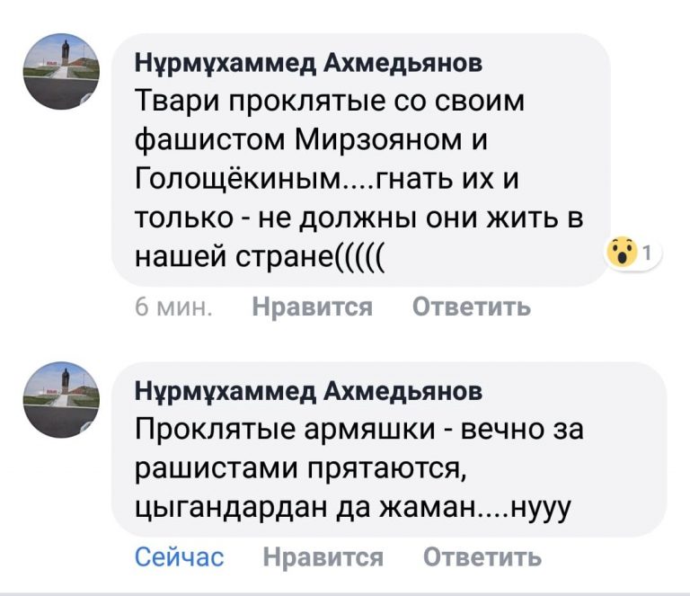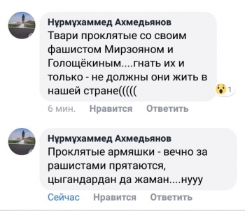 «Кто-то хочет очень сильно раздуть пожар, казахам и армянам нечего делить, честно надо найти, кто это сделал и наказать. Кто-то очень хочет поссорить и мутит. Армяне никогда первыми нож не возьмут, это знаю точно. Есть много свидетелей, кто говорит совсем другое, но их никто не хочет слышать, странно, почему?»