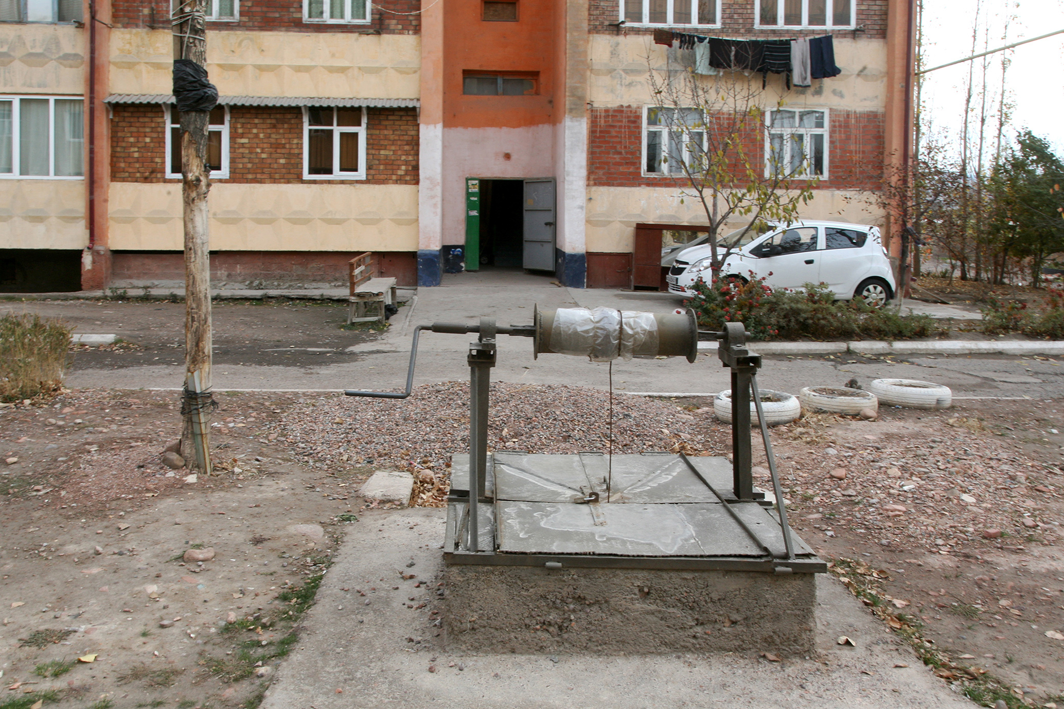 Колодец для воды перед подъездом жилого дома в Ангрене. Ноябрь, 2021